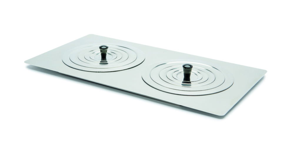 Flat lid for unstirred water baths. With ring sets of variable hole diameter to accommodate tall vessels whilst reducing evaporation.