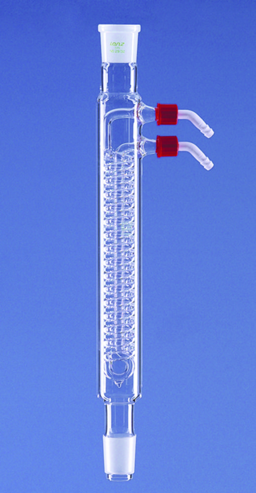 Made of DURAN® tubing. Acc. to DIN 12581 and in addition to DIN standard. For condensing vapours. With NS cone and socket water connection GL14 threads with two threaded plastic olives.