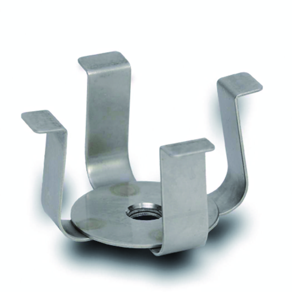 Clamps for Erlenmeyer flasks, Media bottles* and Fernbach flasks**. Incl. screws for easy attachment to platforms. Clamps for flasks with 50 ml and higher are supplied with a spring to hold the flask in place.