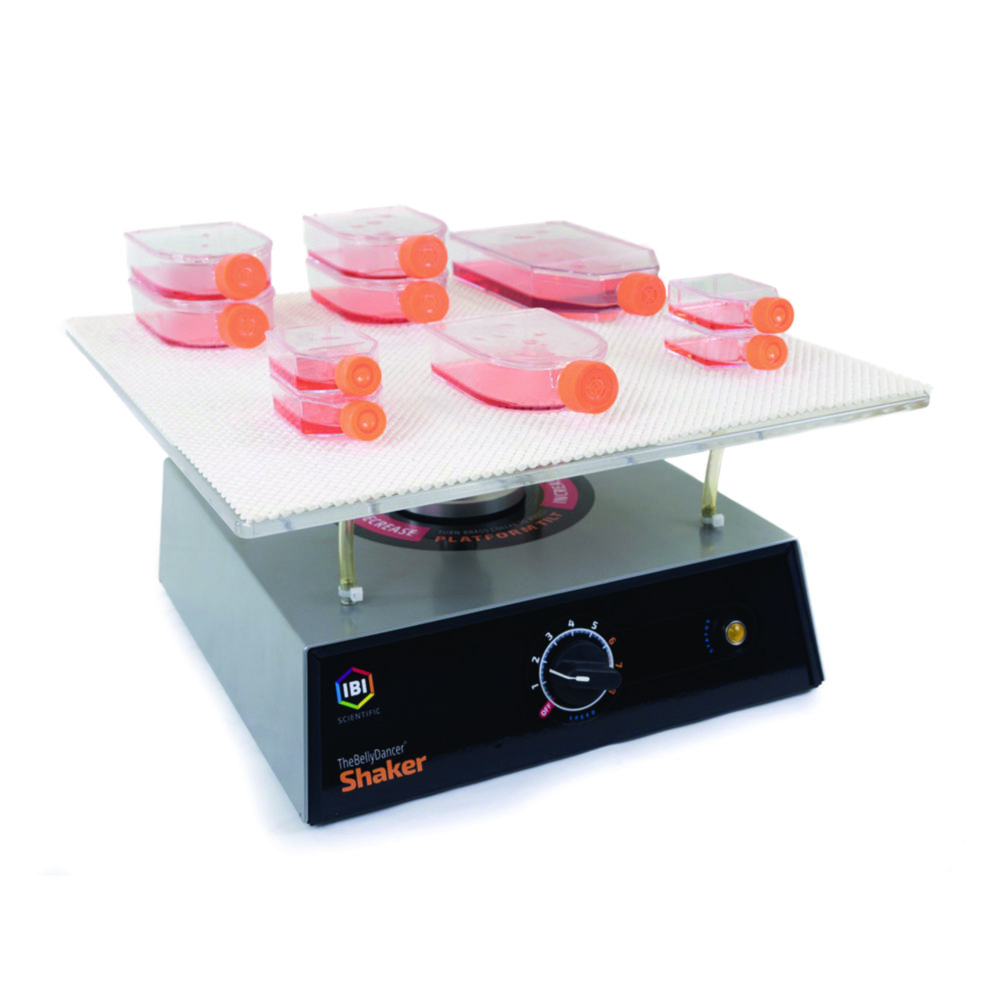 The undulating, three-dimensional motion of this lab shaker has been designed to provide optimal movement for tissue culture, staining and destaining gels, Northern, Southern or Western blotting and immunoprecipitation. The simple liquid agitation system, consisting of an orbiting platform, which is flexibly anchored at four corners, so that the platform movement, with an appropriately set inclination, is an effective combination of orbital and tumble shaker.