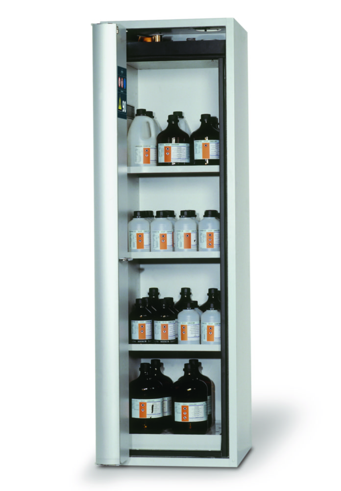 - outer body made of sheet steel in light grey (RAL 7035), interior with chemical resistant surface