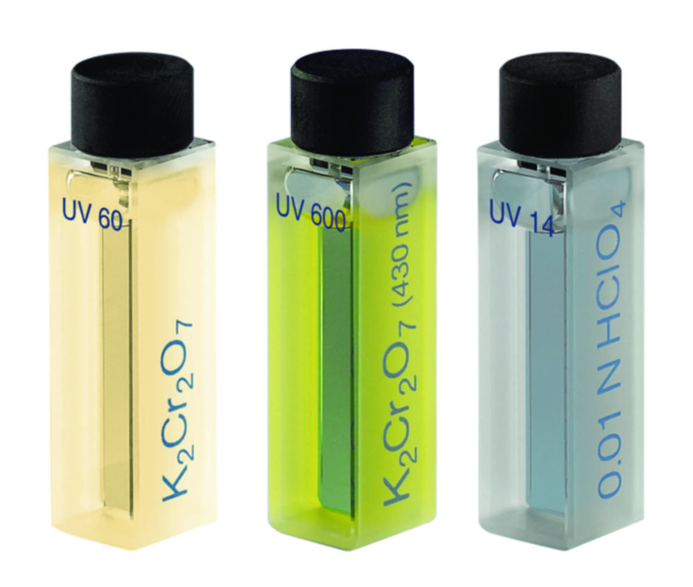 To maintain constant good measurement results, a regular review of the accuracy of the spectrophotometer is required. With the use of certified reference materials from Hellma Analytics, you make sure that your equipment qualifications meet the requirements of the pharmacopoeias and fulfill your internal quality requirements, at the same time you reach the international comparability of your measurement results. The certified reference materials (calibration standards) of the DIN EN ISO 17025 accredited Hellma Analytics calibration laboratory are traceable to the primary standards of NIST (National Institute of Standards and Technology) and meet the requirements of the major pharmacopoeias (e.g. EP, DAB, USP).