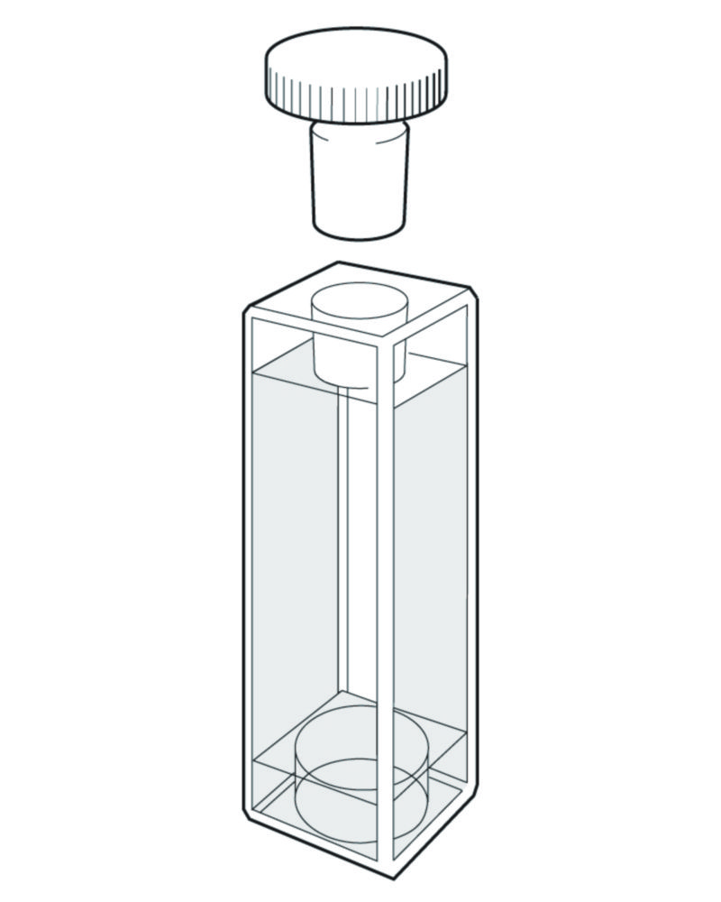 High precision standard cells for routine analysis. Suitable for most spectral photometers, using rectangular cells. Available with cover or with stopper for a liquid-tight seal. Cover and stopper made of PTFE.