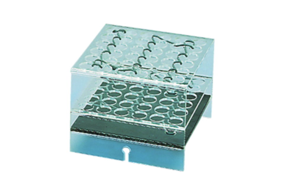 VX 2 Reagenzglasaufsatz: Für bis zu 36 Reagenzgläser oder Zentrifugenröhrchen Ø 16 mm. Material: PC