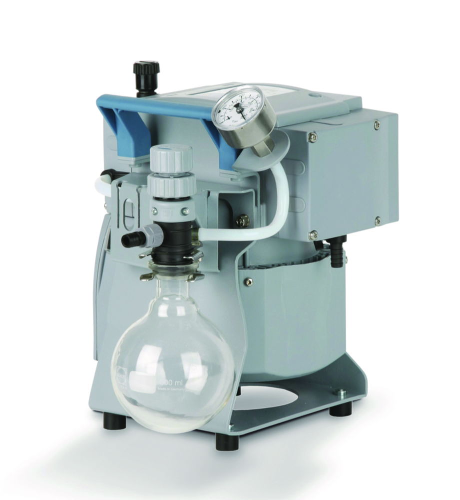 Zum Evakuieren, Eindampfen und Abpumpen von Gasen und Dämpfen in chemischen, biologischen und pharmazeutischen Laboren, bei denen keine druckseitige Kondensation der Lösemitteldämpfe erforderlich ist. Das manuelle Durchflussregelventil erlaubt das effektive Saugvermögen am Vakuumanschluss einzustellen, das Vakuum-Manometer bietet eine analoge Vakuumanzeige. Dieses System eignet sich besonders gut für die Filtration. Der saugseitige Abscheider hält Partikel und Flüssigkeitströpfchen zurück.