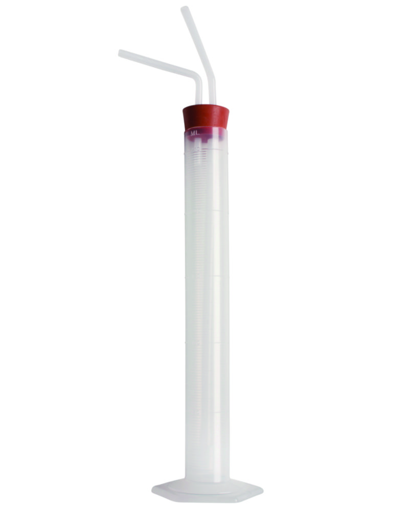 Graduierter 250 ml Zylinder aus Polypropylen zur Reinigung von Gasen, mit großem, stabilem Standfuß.