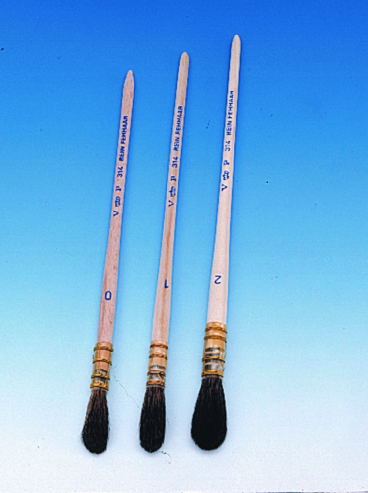 Schwarzes Ziegenhaar. In Kielen auf runden Holzstielen.