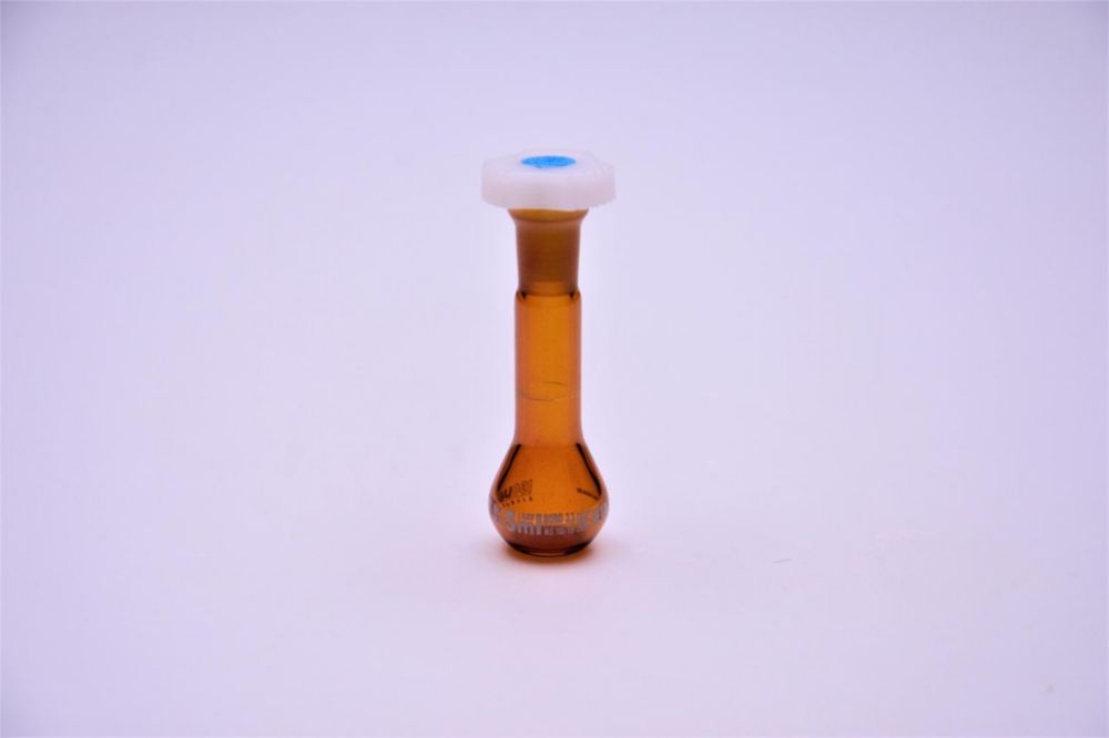 Produktinformationen "Messkolben, Borosilikatglas 3.3, Klasse A, mit PE Stopfen, beschichtet, braun"