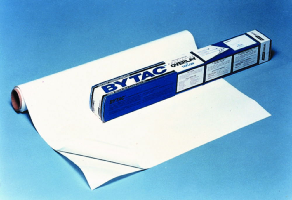 Bytac® Arbeitsplatz Protektoren aus FEP mit Vinyl- oder Aluminium-Verstärkung. Inert gegenüber den meisten Chemikalien. Antihaftend und leicht zu reinigen. Für die Verwendung auf Laborarbeitsplätzen oder in Sicherheitswerkbänken. Vereinfacht das Visualisieren von Farbänderungen bei Titrationen durch erhöhten Kontrast. Schützt Oberflächen vor Kontaminationen mit radioaktiven Chemikalien.