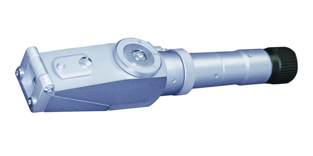 Mit verschiedenen Skalen z.B. Brix (Saccharose in wässriger Lösung) oder nD (Brechungsindex). Verstellbares Okular (auf jedes Auge einstellbar). Streulicht-Defensor aus weichem Gummi (eliminiert Fremdlicht, Brillengläser rutschen nicht ab und werden nicht zerkratzt). Gummimanschette am Griffstück (schützend, griffgerecht). Dadurch ist die Ablesbarkeit spürbar besser (automatische Konzentration des Blickes auf das Wesentliche). Alle Modelle sind extrem leicht.