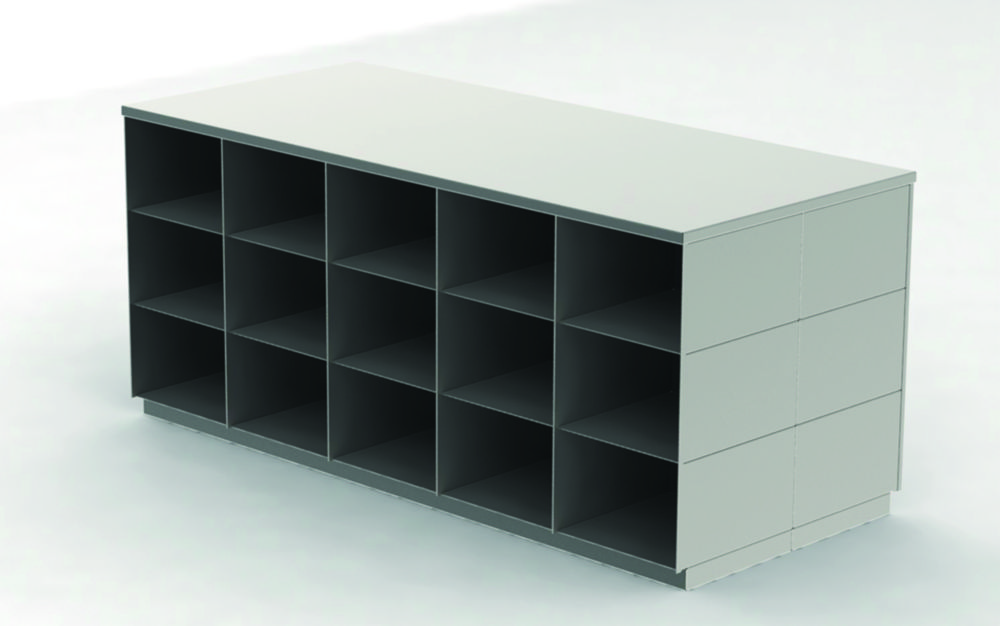 Sit-Over-Bank bestehend aus Sitzfläche, Schuhablagefächern und Sockel