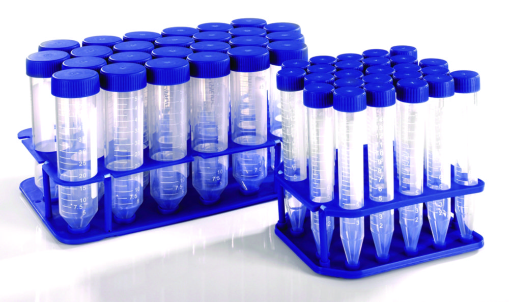 Neue, verbesserte konische Röhrchen mit dem größten Schreibfeld auf dem Markt ermöglichen eine verbesserte Rückverfolgbarkeit durch zusätzlichen Platz für mehr Informationen. Wiederverwertbares Kunststoffgestell reduziert die Abfallmenge im Labor. Die neuen Röhrchen besitzen eine höhere RZB-Belastbarkeit für einen breiteren Anwendungsbereich von Low-Speed- bis zur Superspeed-Zentrifugation. Sie entsprechen den Anforderungen der US Pharmakopöe USP Klasse VI und sind nicht zytotoxisch, pyrogenfrei und RNase/DNase-frei. Graduiert, auslaufsicher und steril (SAL-Wert 10-6).